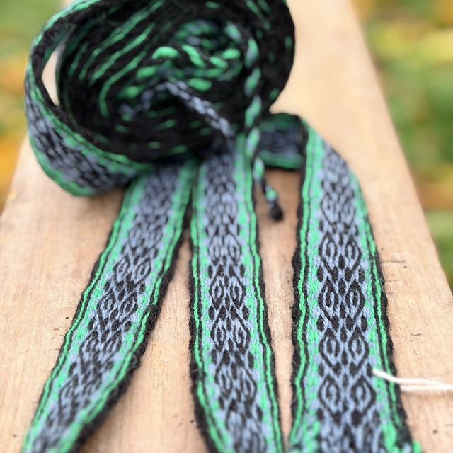 Galons tissés aux cartes ; peuvent servir comme ceintures, sangles ou pour décorer les vêtements.